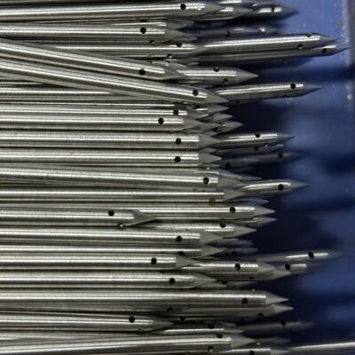 Penggilingan Bevel & Pembentukan Lubang (Proses Inti):Ujung distal mengalami penggilingan presisi pada micro-grinder CNC khusus. Proses ini menciptakan sudut bevel yang tajam dan spesifik (misalnya, 15 °, 30 °) yang mendefinisikan karakteristik semprotan / jet.Untuk jarum semprot, ujungnya sendiri dapat dibentuk lebih lanjut atau memiliki micro-orifice dibor.